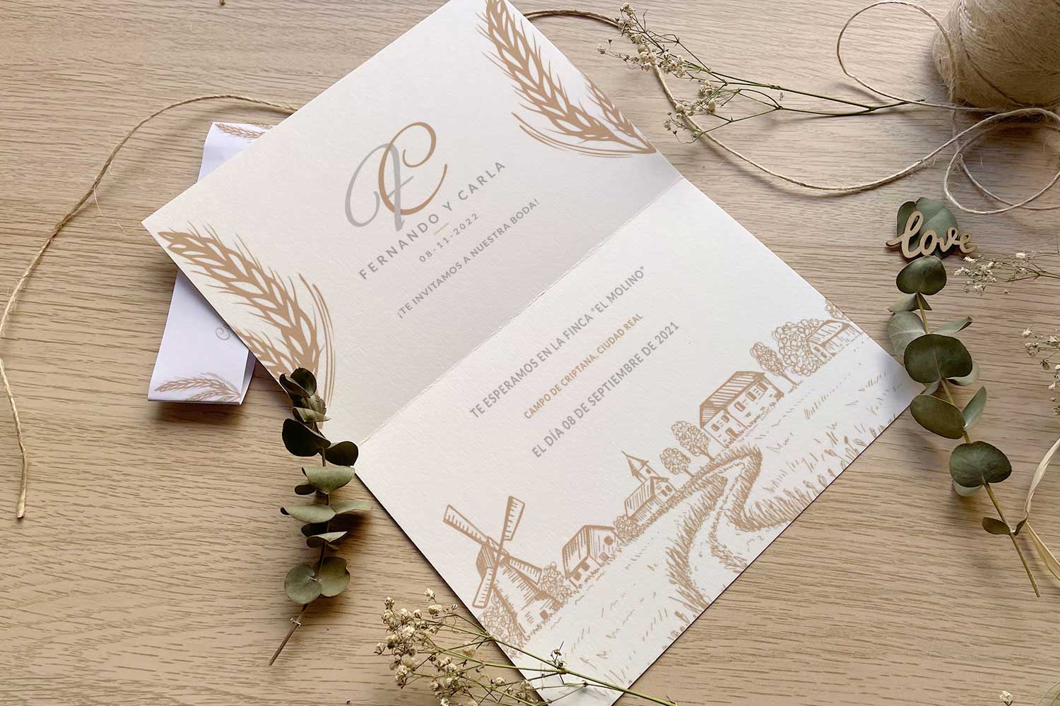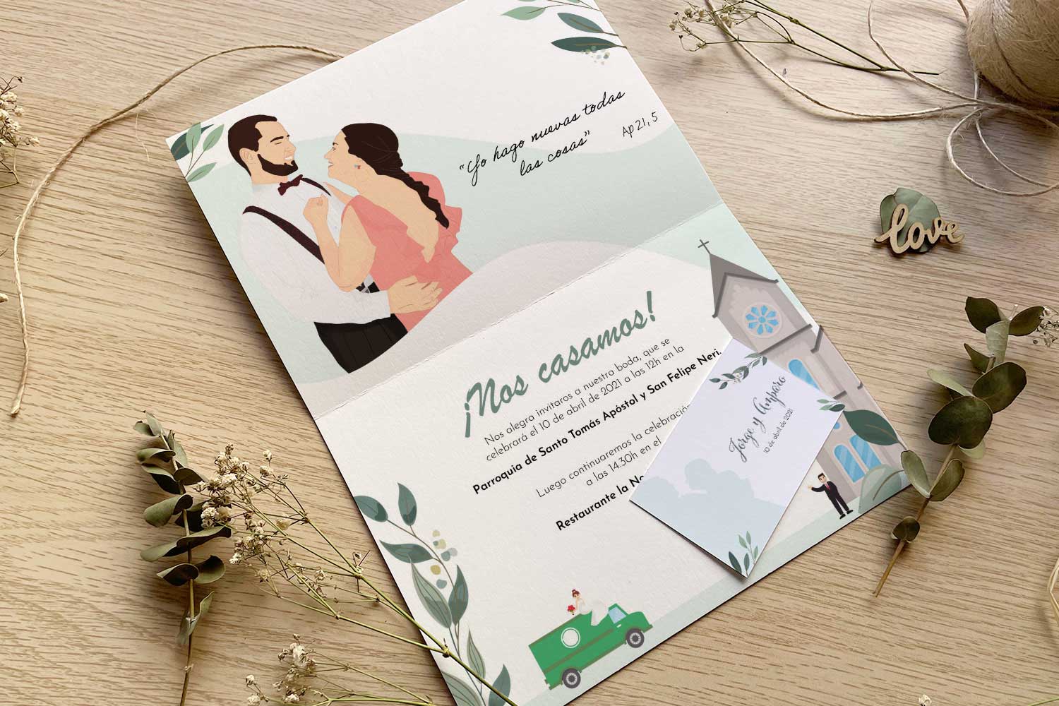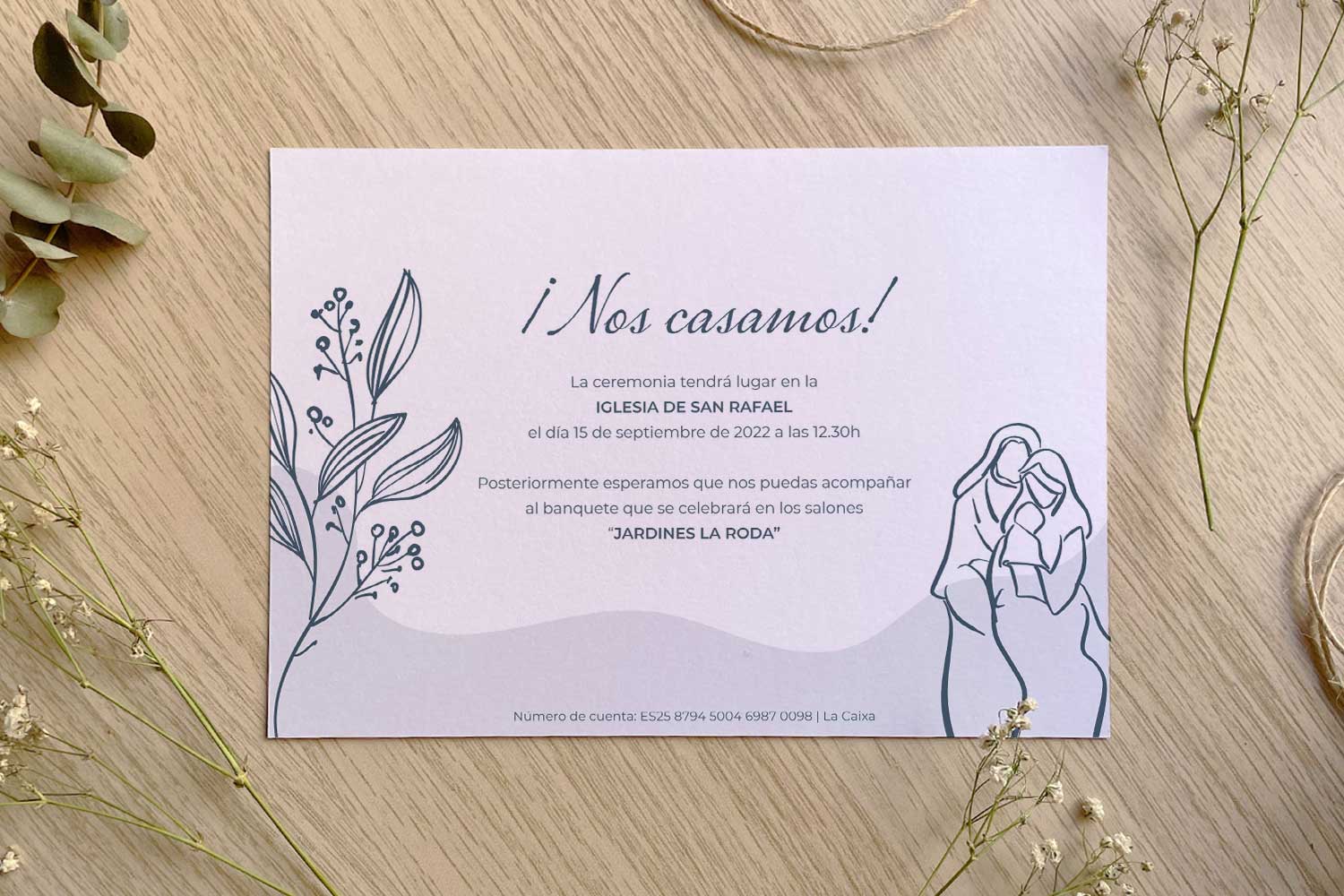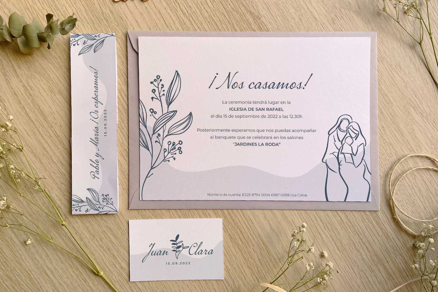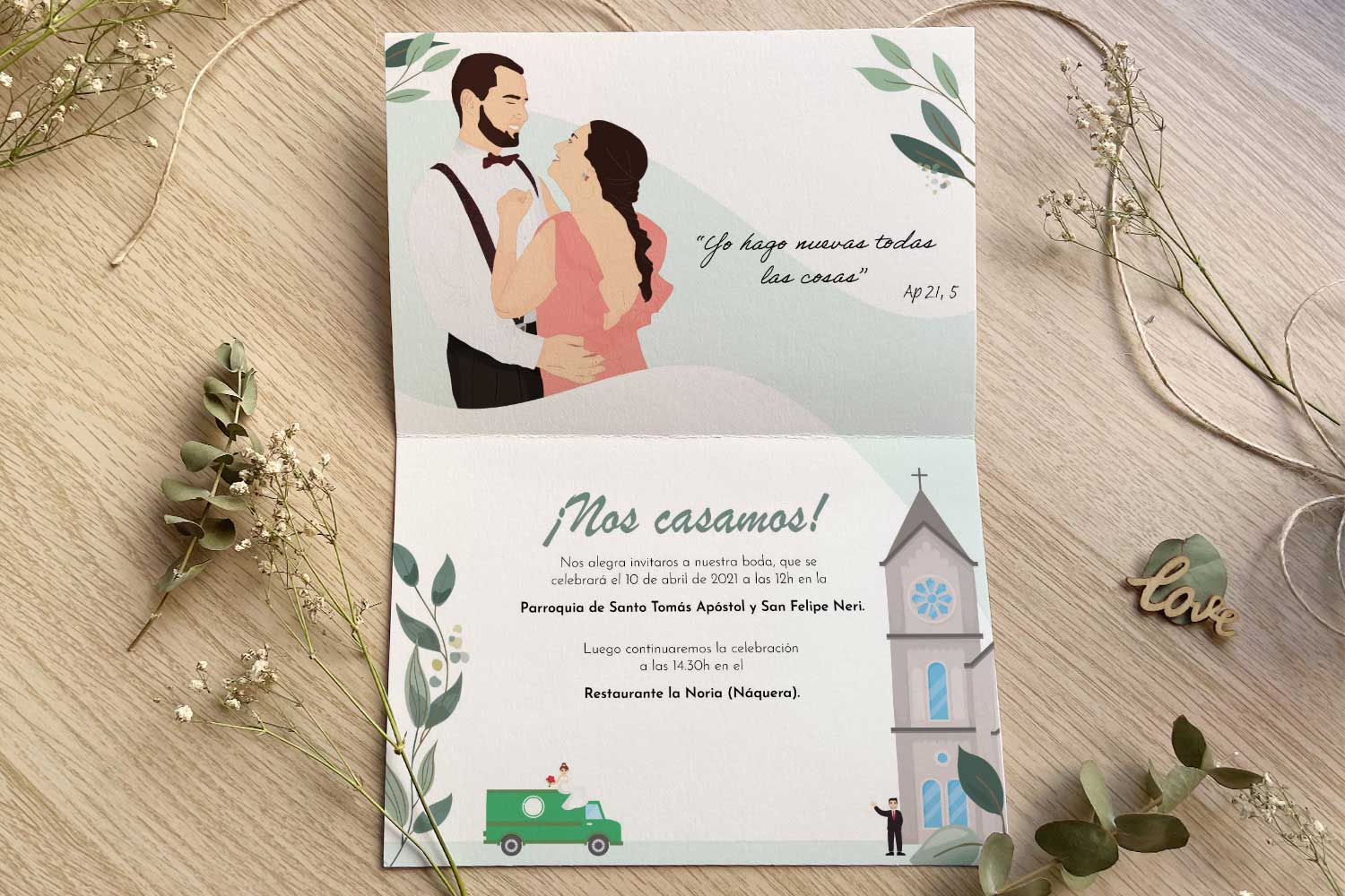 Tendréis un diseño exclusivo para vosotros. No trabajamos con plantillas por lo que nuestro equipo de diseño gráfico e ilustración trabajará para hacer vuestra invitación de boda ideal.